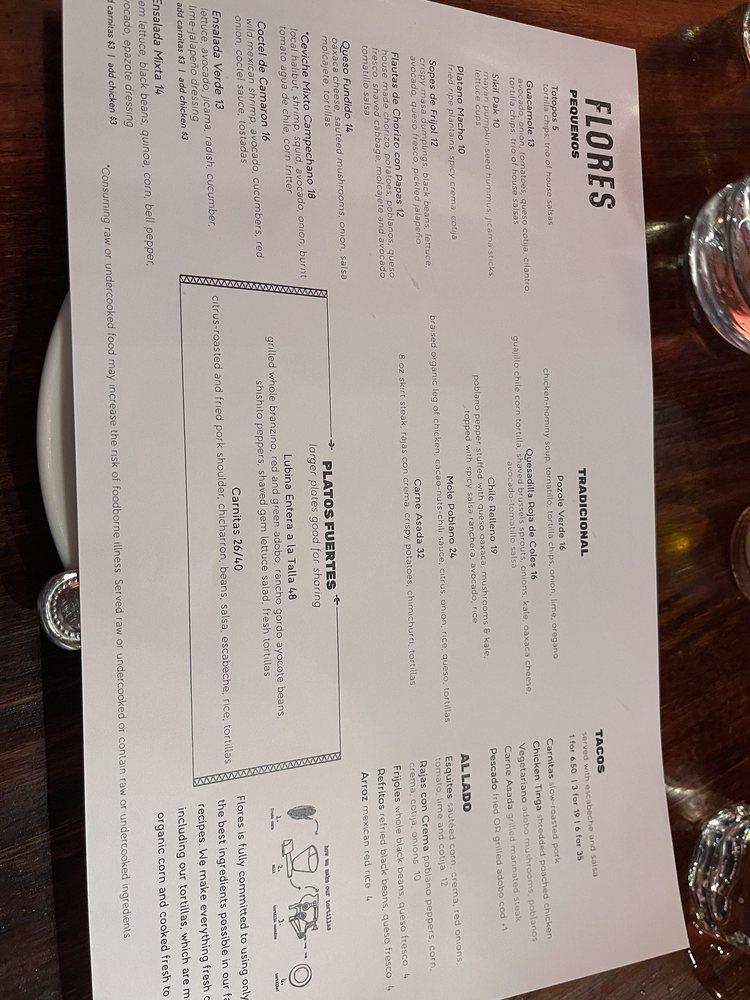 Flores is a trendy and casual Mexican restaurant located in San Mateo, CA. With a diverse menu that caters to different dietary preferences, Flores offers a range of options for everyone. The restaurant provides various utilities such as reservation options, delivery, takeout, and catering services. Customers rave about the delicious food, attentive service, and fantastic drinks at Flores, with standout dishes like flautas, enchiladas, and carne asada bowls. The happy hour specials, including the dos amigos deal, are particularly popular among patrons. The restaurant's commitment to sustainability is evident through their use of compostable containers, plastic-free packaging, and reusable tableware. Flores is a great choice for a casual dinner with friends or family, offering a vibrant atmosphere and mouthwatering Mexican cuisine.